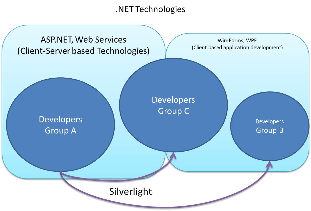 Silverlight brought many of the developers from Group A to Group B and Group C, minimising the difference between technologies.That points at one reason why Silverlight was started.